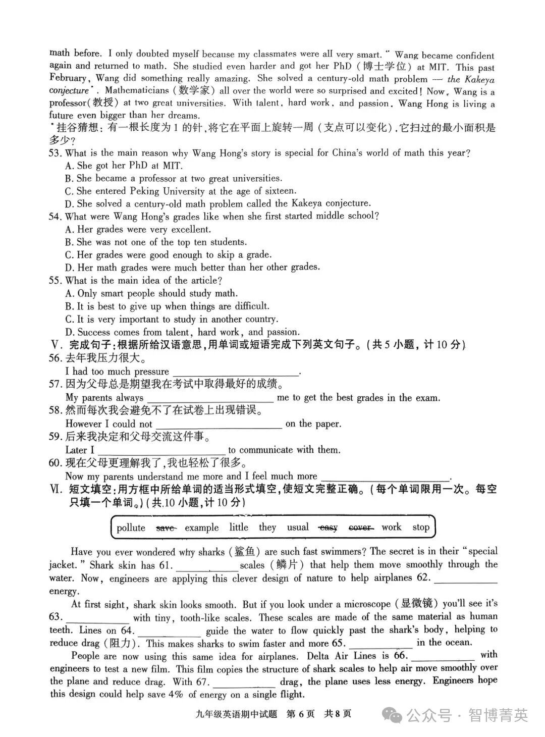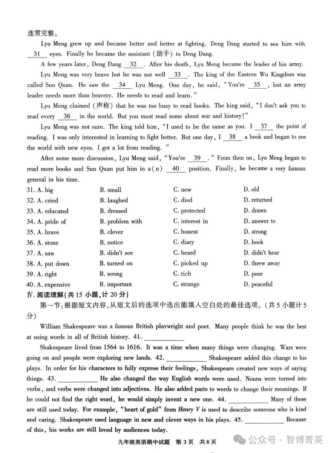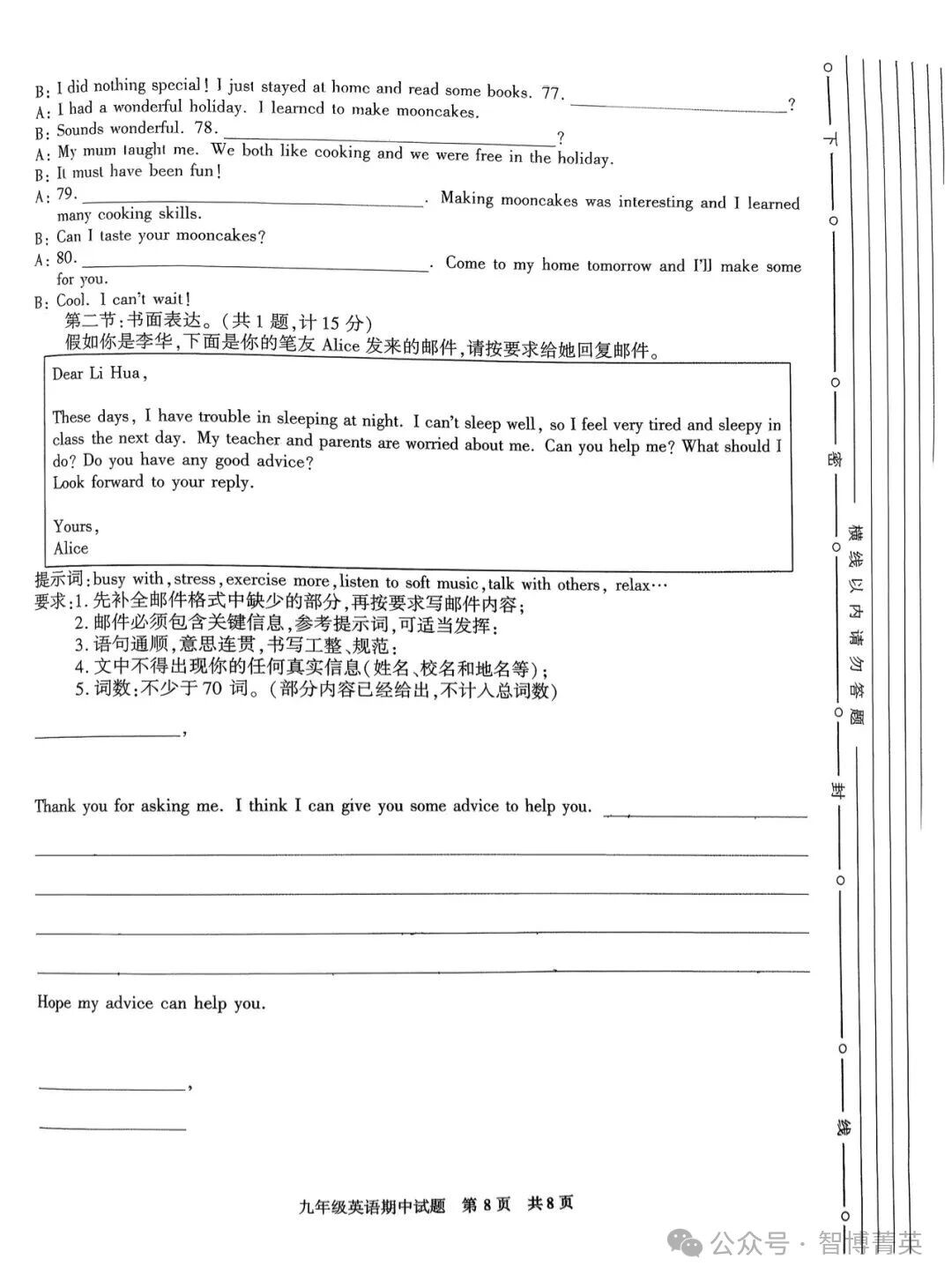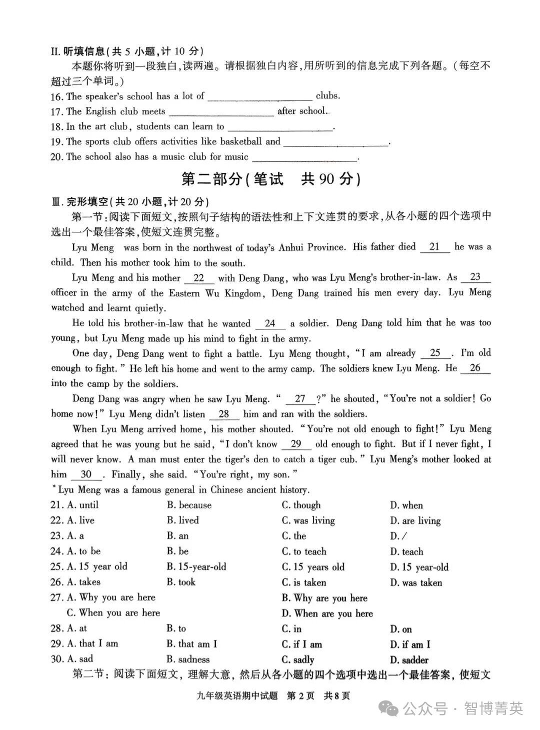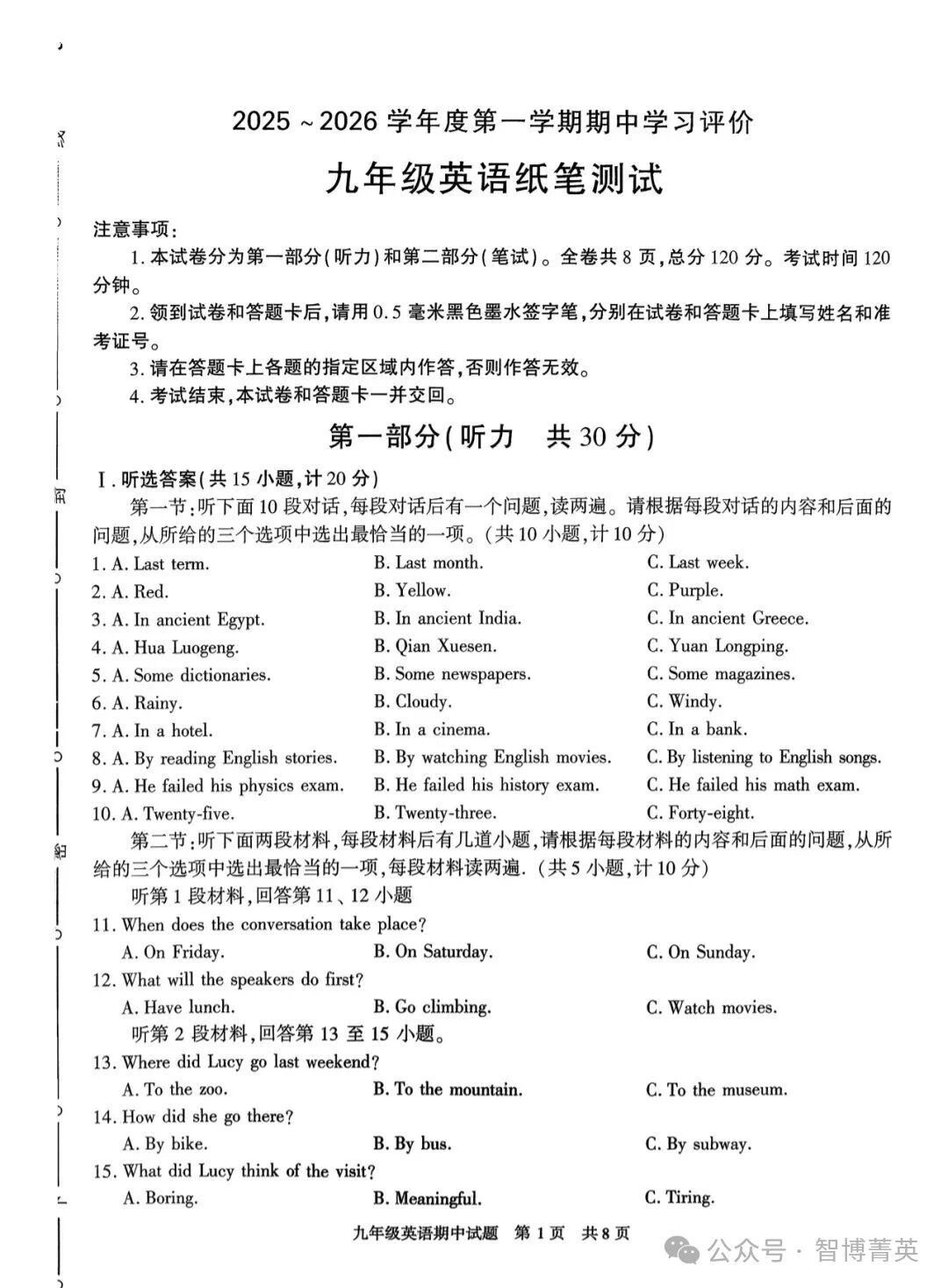 西安西北大學附中初三英語期中考試卷