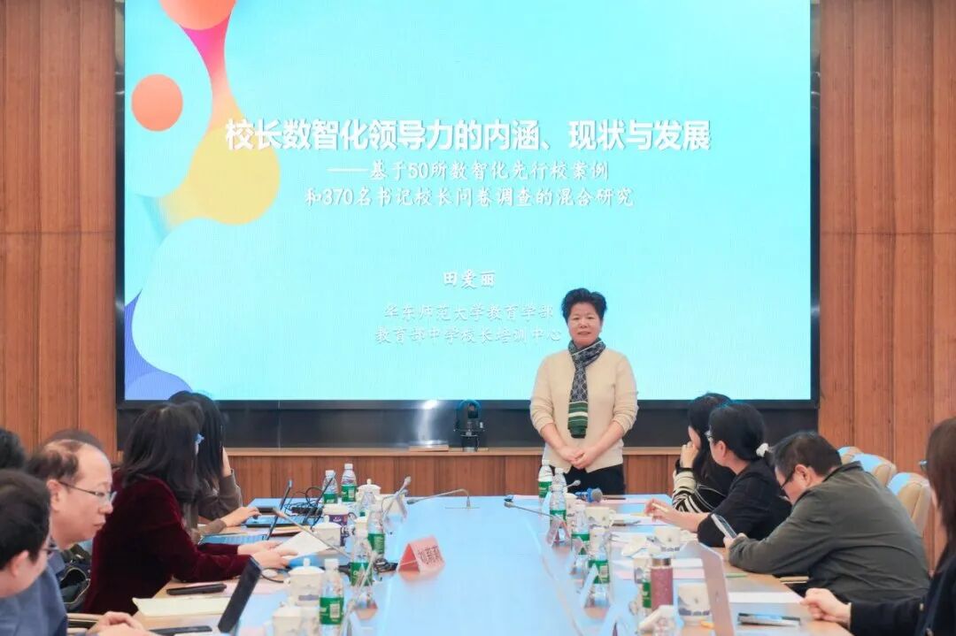 華東師范大學教授、教育部中學校長培訓中心副主任田愛麗首先向全國教育科學規劃辦公室、中國教育科學研究院以及與會嘉賓表達了感謝,強調智能時代的學校教育和管理實踐正在發生巨大的變化,教育理論、教育領導理論需與時俱進,及時從實踐中總結概況理論,并指導實踐發展,校長的數智領導力成為時代之所需。