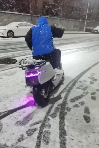 河南下雪了,車都打滑了!