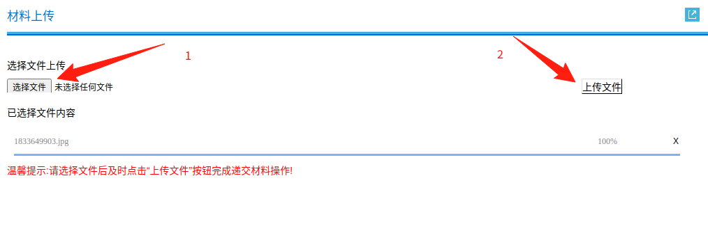 若系統(tǒng)匹配失敗,需要根據(jù)系統(tǒng)提示,上傳材料,再次提交。