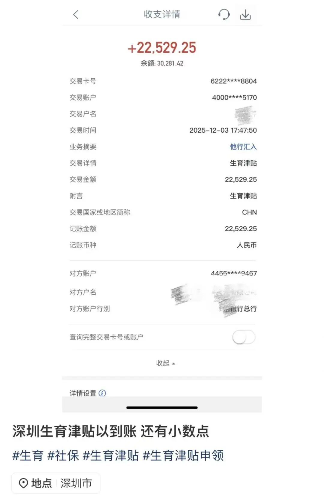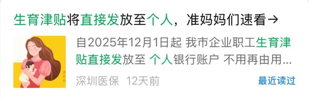 2025年12月1日起,深圳市企業(yè)職工生育津貼直接發(fā)放到個人。2025年12月1日前生育或施行計劃生育手術(shù)的,生育津貼仍由用人單位申領(lǐng)。