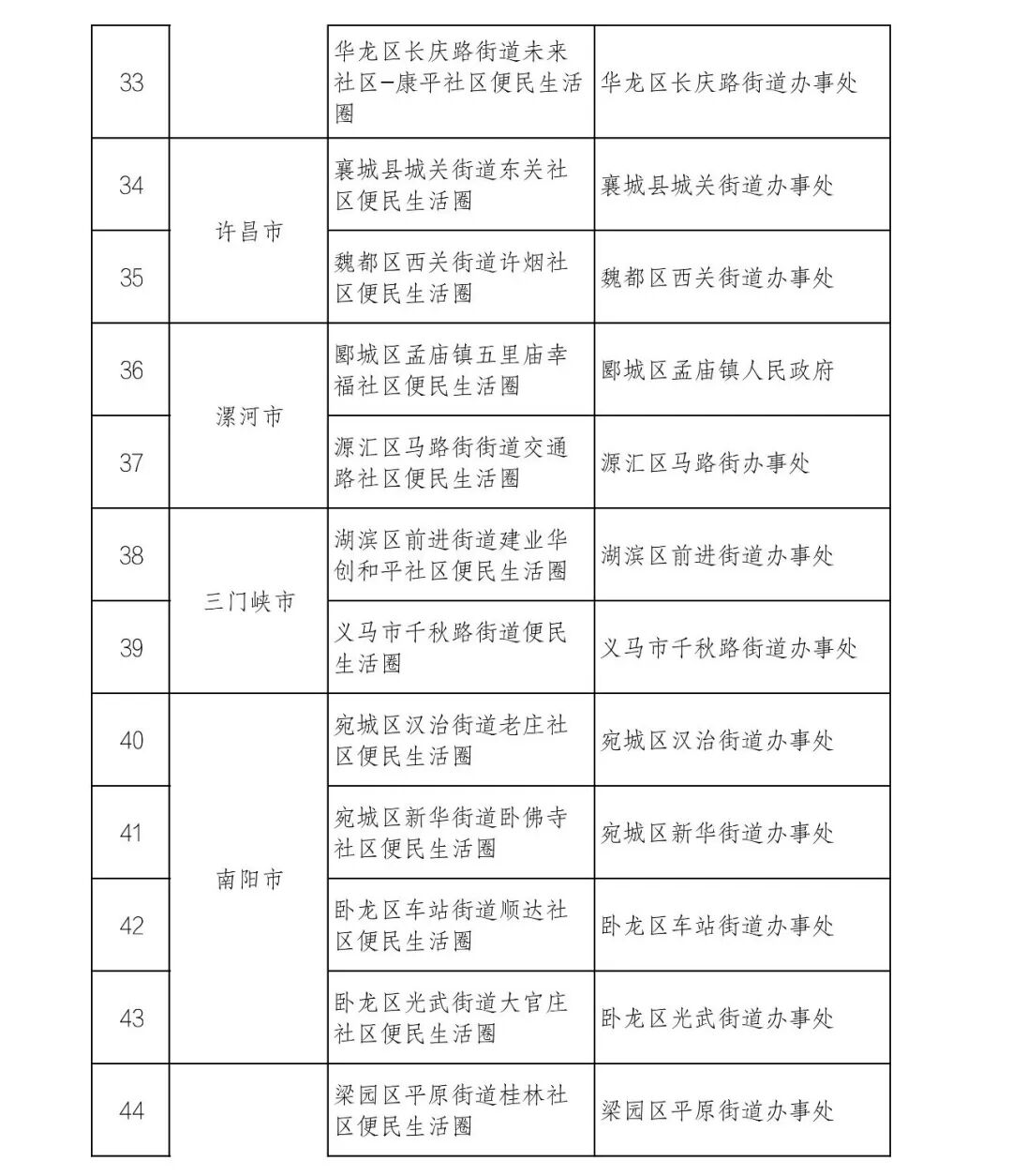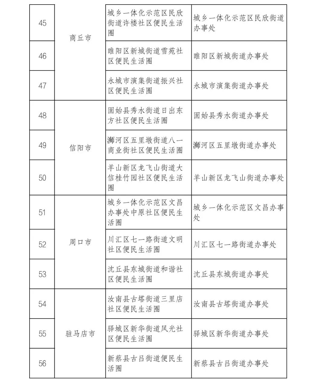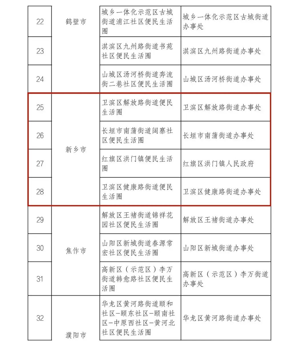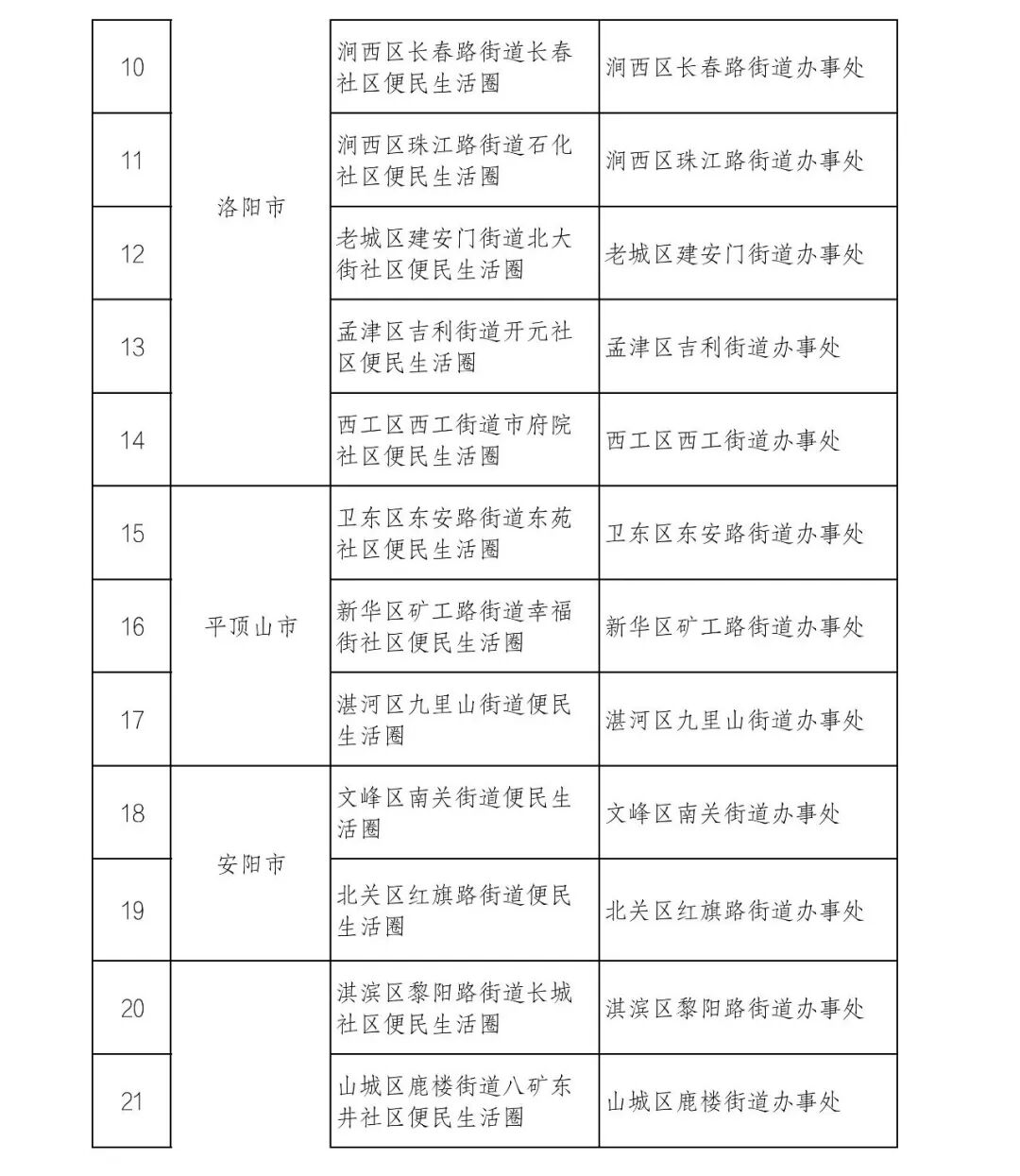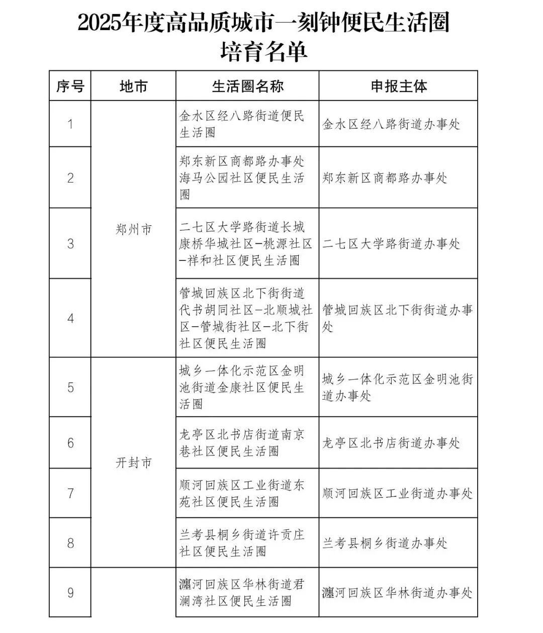 河南省2025年度城市一刻鐘便民生活圈培育名單