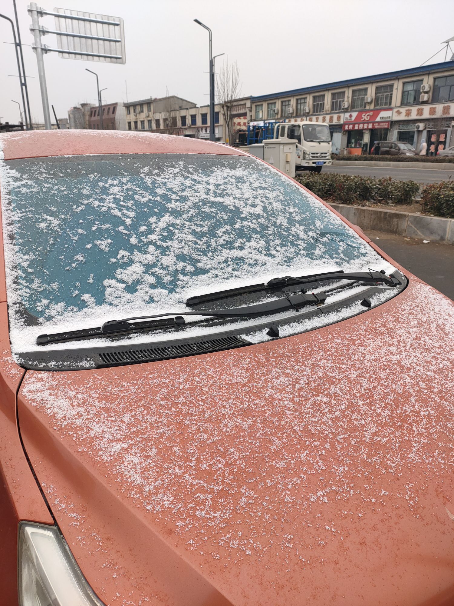 唯獨落在草叢深處、路邊帳篷頂上、枯葉堆間,或是遺落街角的塑料紙、不易融化的物件上,雪才得以暫存。它們悄悄攢聚,越積越密,不多時,那些角落便覆上了一層薄薄的白,像被時間輕輕呵了口氣。
