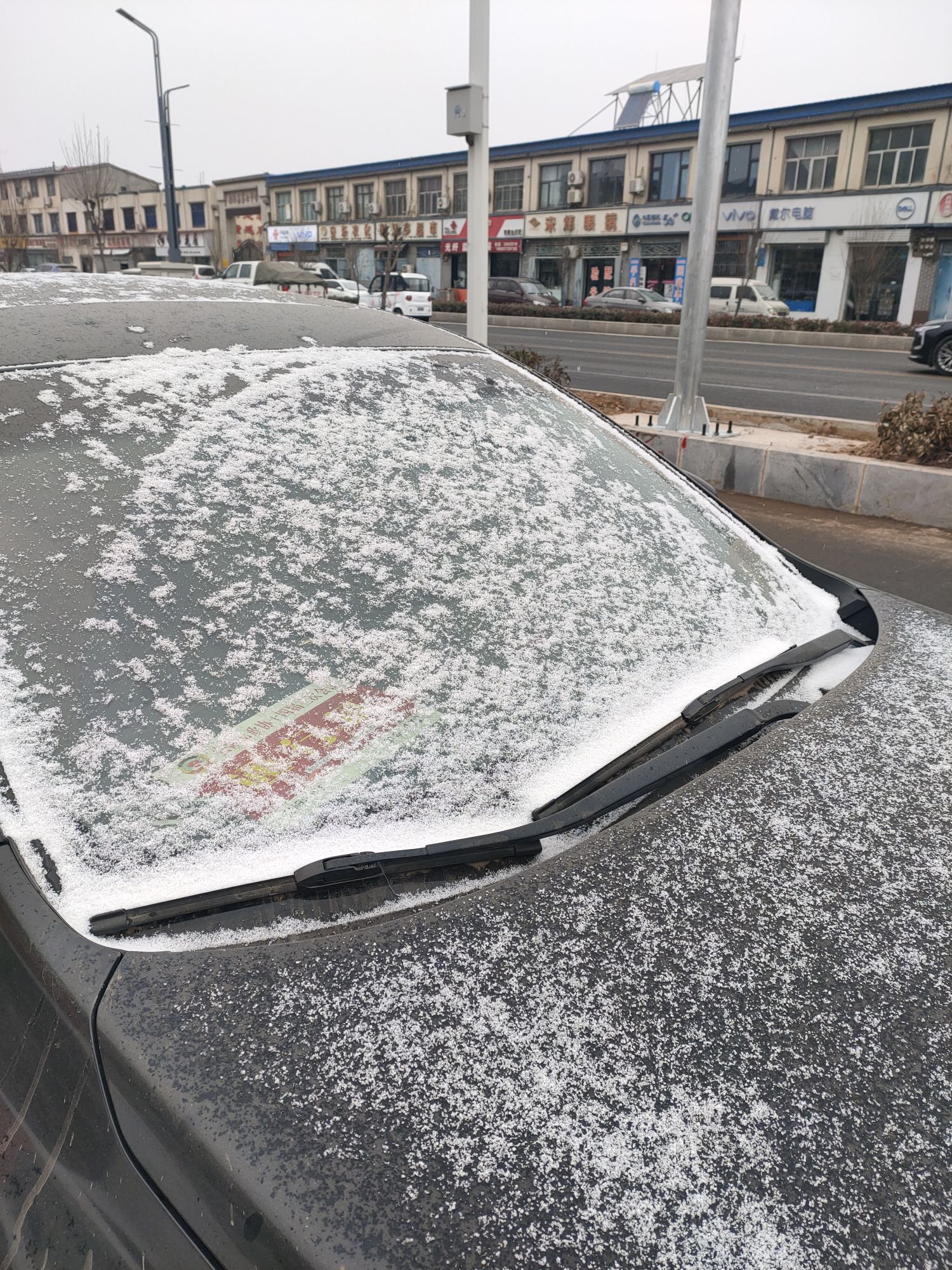 預報了多日的降溫降雪,終于在這時悄然應驗。七點剛過,空中飄起了雪滲,細密潔白的雪晶,宛如冬日的精靈,輕輕散落在路面上、花盆的葉尖上、停靠的汽車頂上,也落進路旁綠化帶的花圃里。有些棲在葉端的雪花,悠悠地一滑,便悄然墜下,因地面溫度還高,雪晶一觸地,很快就化沒了蹤跡。