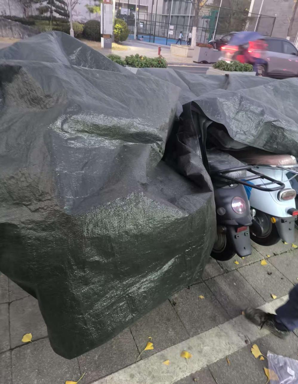 知危還看到,有些店鋪擺在路邊的待售舊國標車輛都用防水布遮蓋了起來,在知危表示看車意向后,店主掀起防水布一角說:只能鉆進去看了。