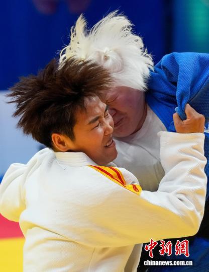 在女子J1+70公斤級(jí)決賽中,東道主廣東名將王文靜雖一度被對(duì)手摔倒,但在全場觀眾的加油聲中,她抓住時(shí)機(jī)以投技實(shí)現(xiàn)反超,最終“一本”摘金。