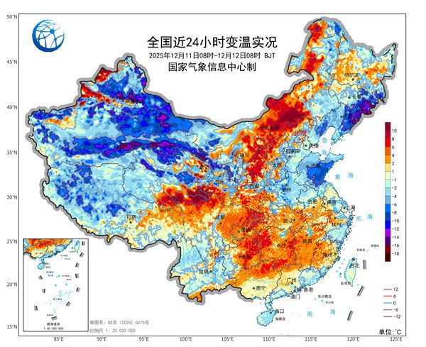中國天氣網訊 今明天(12月12日至13日)寒潮將繼續影響我國,中東部氣溫將下降6至10℃,局地降溫將超12℃。降溫過后,長江中下游及其以北多地氣溫將創下半年來的新低,最低溫度0℃線將南壓至浙江南部、江西北部、湖北南部一帶。14日之后,全國大部氣溫將迅速回升。