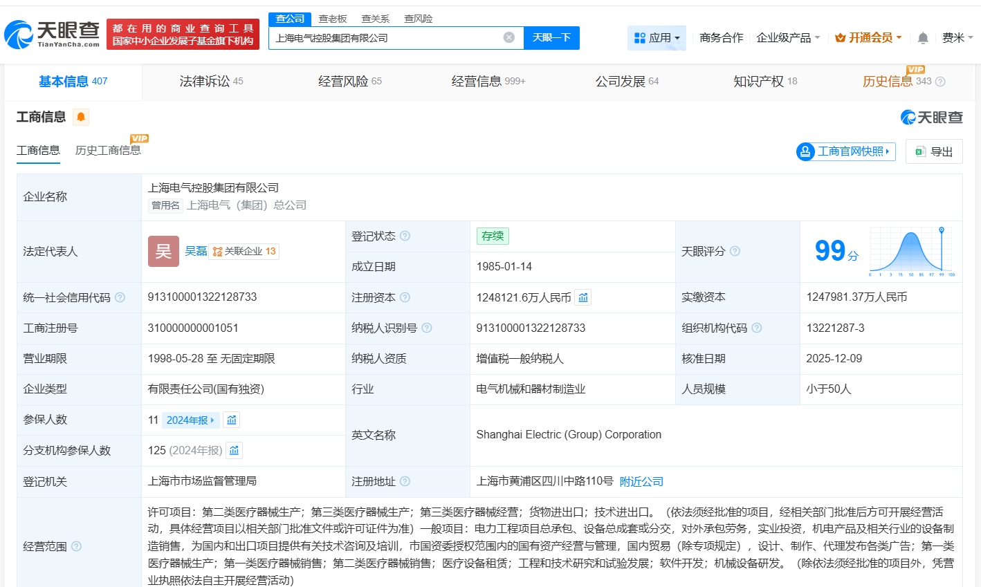 天眼查App顯示,近日,上海電氣控股集團(tuán)有限公司發(fā)生工商變更,注冊(cè)資本由約114.72億人民幣增至約124.81億人民幣,增幅約9%,同時(shí)多位高管發(fā)生變更…