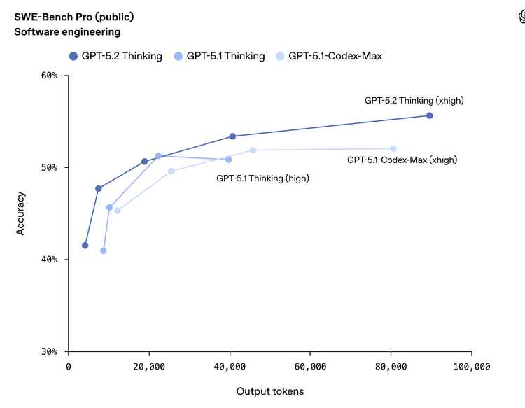 以前長上下文是個老大難問題,塞太多內容進去模型就開始健忘。5.2 在 256k token 級別的測試中表現穩定,基本能把關鍵信息都記住。像合同審核、文獻梳理這種需要反復引用上文的場景,體驗會好很多。Box 反饋說,5.2 從長文檔中提取信息的速度快了 40%,推理準確率也提升了 40%。