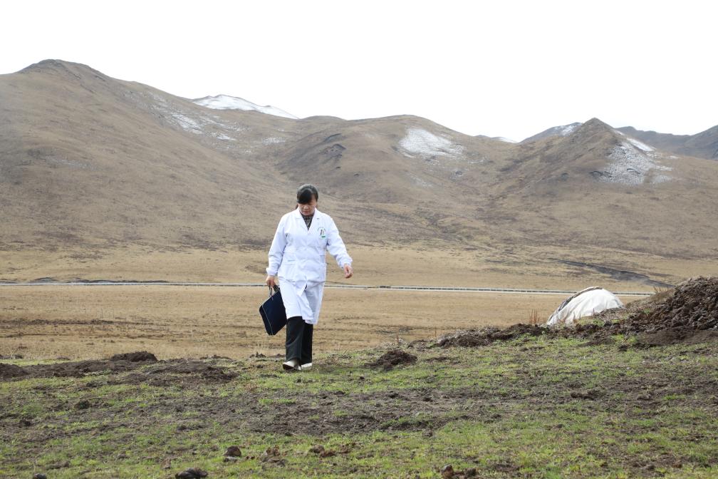 這天,王蔣艷乘車來到60公里外的藏族牧民索南草家中。從縣城到牧場的路面坑洼不平,牛羊不時“阻斷”去路,往返一趟常常耗費大半天。