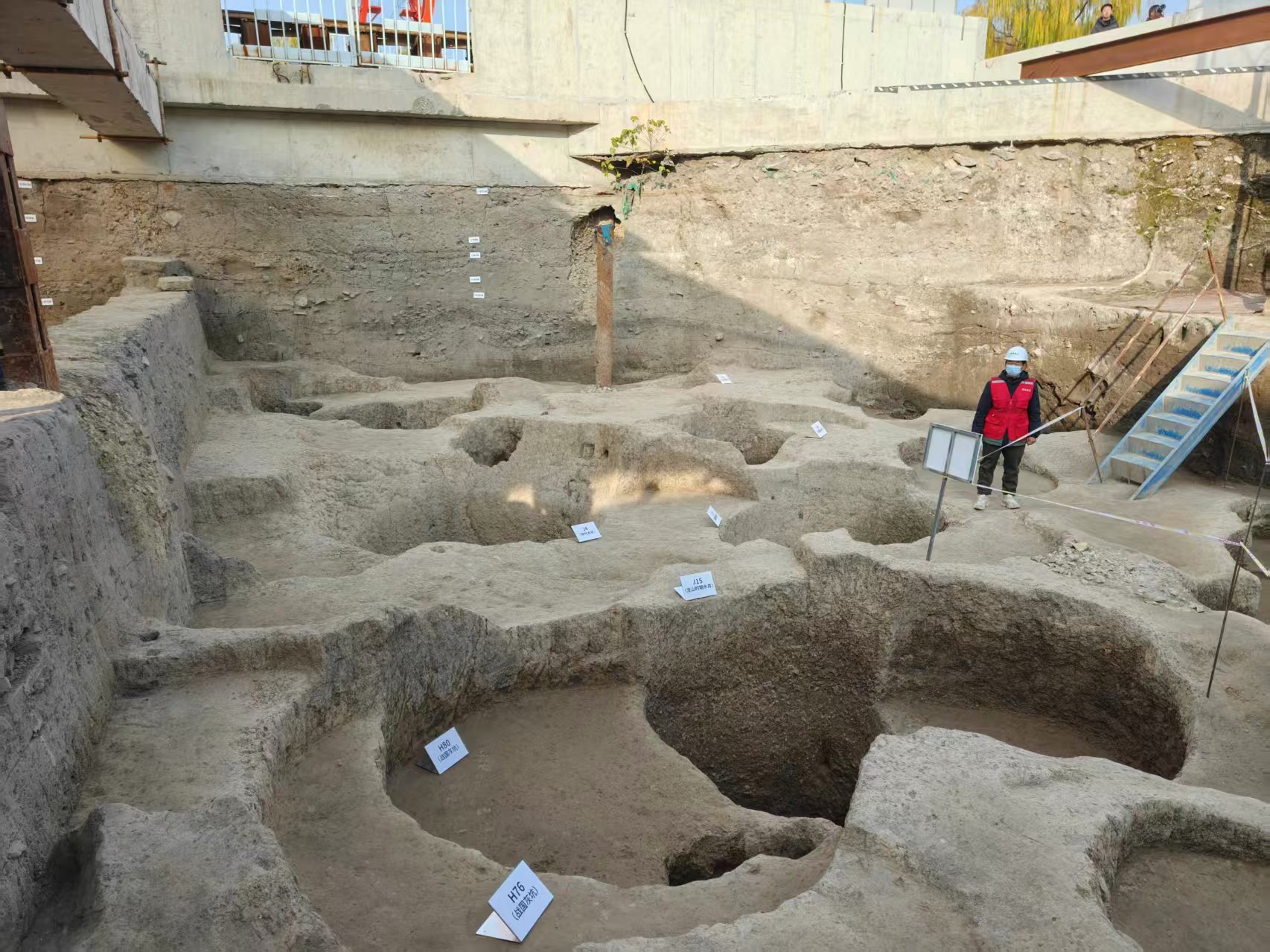 為配合濟南軌道交通地鐵6號線大明湖站建設,根據(jù)濟南市考古前置工作的要求,2024年4月,濟南市考古研究院對項目占地區(qū)域進行考古調(diào)查勘探時,發(fā)現(xiàn)該遺址。為保護地下文化遺產(chǎn)、配合地鐵站建設,經(jīng)國家文物局批準,2024年11月底,市考古研究院開始對該遺址進行考古發(fā)掘。經(jīng)過1年的努力,考古工作取得階段性成果。