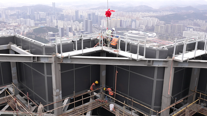 這是繼核心筒主體結構、外框鋼結構、主體幕墻、塔冠鋼結構等封頂之后,“山東第一高”突破的又一關鍵節(jié)點,在濟南中央商務區(qū)五大標志性建筑群中以“山”之勢登峰齊魯之巔,助力國際化一流中心城區(qū)建設開創(chuàng)新局面,成為展現(xiàn)“強省會”現(xiàn)代化形象的新地標。