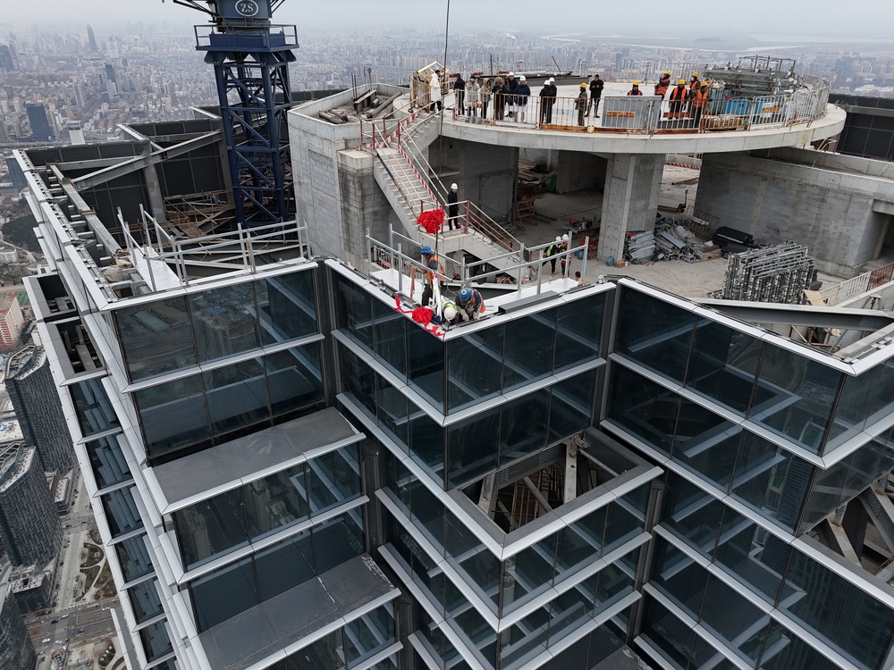 特別是在最后的塔冠幕墻施工階段,項目團隊以鐵軍之姿披荊斬棘,成立尖刀專班,構建“專業(yè)統(tǒng)籌+項目一線”兩級管控體系,通過優(yōu)化施工組織、增加有效作業(yè)時間、提升作業(yè)效率等舉措,成功克服非標樓層造型復雜、高海拔施工作業(yè)、低溫寒潮與強風天氣等多重挑戰(zhàn),以“晝夜兼程、分秒必爭”的決戰(zhàn)姿態(tài)推進沖刺攻堅,為城市天際線鍛鑄巍峨挺拔的鋼鐵脊梁。