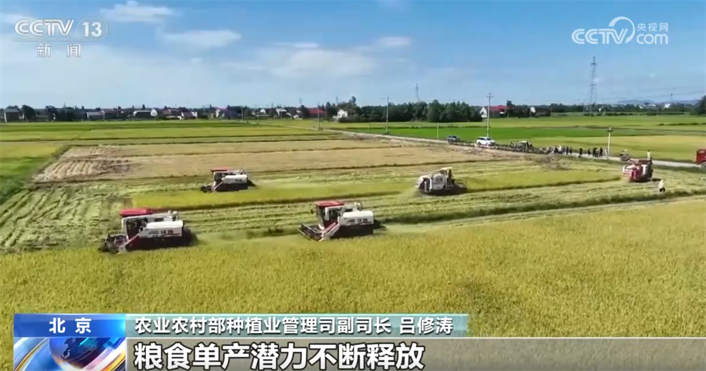 單產提升成效顯著,是今年糧食生產的突出亮點。今年,我國深入推進糧油作物大面積單產提升行動,整建制推進縣增加到702個,持續強化良田良種良機良法“四良融合”,提高了技術到位率和裝備匹配度,促進大面積均衡增產。