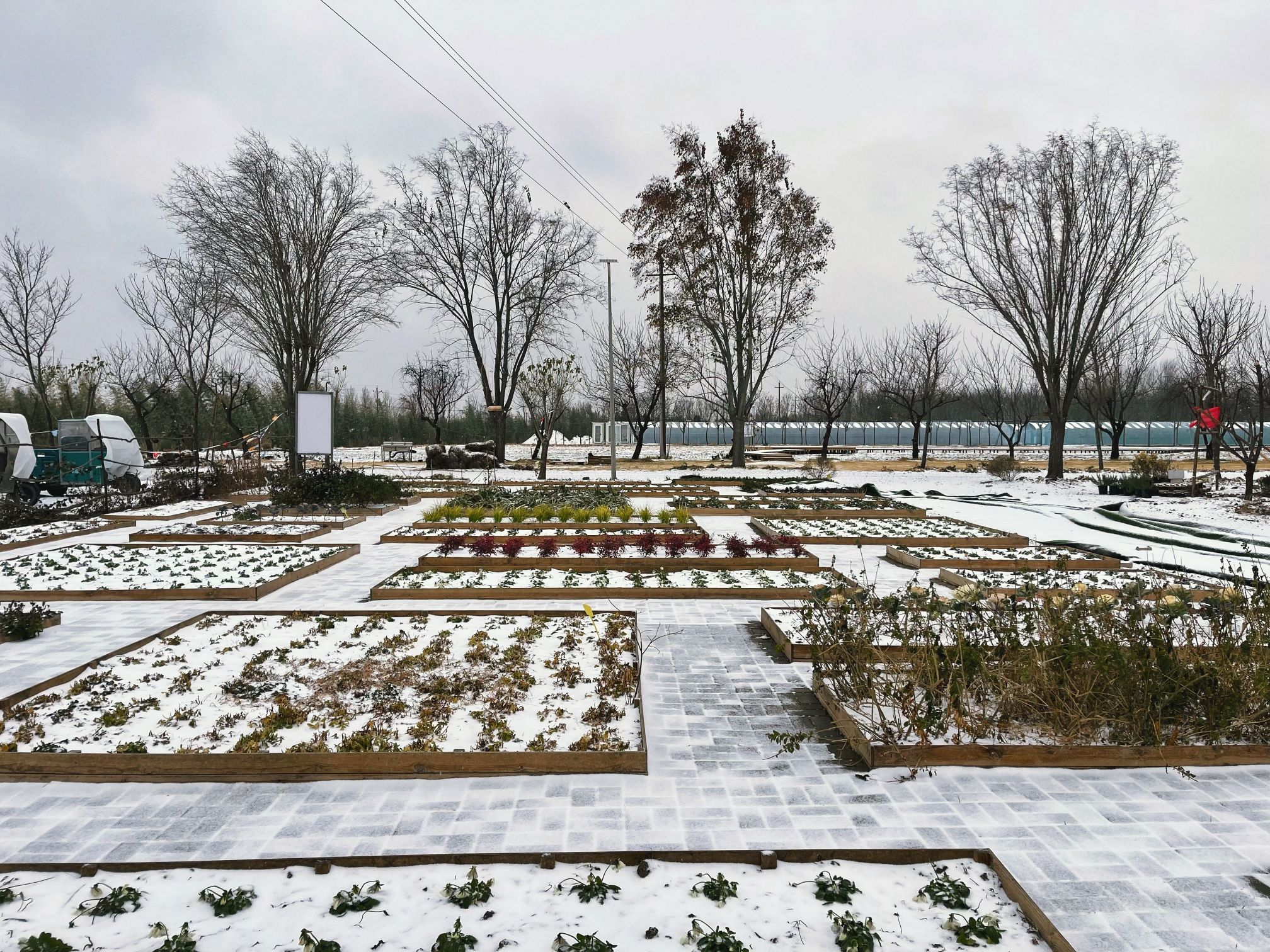 12月的鄭州,原本被干澀的北風統治,鋼筋水泥的森林在灰黃的塵霧里沉默,黃河岸邊的蘆葦搖曳成一片焦躁的枯響。愛怡家有機生態種植基地仿佛被銀裝素裹了一般,顯得格外清新秀麗,也暫時淡忘了昨日的喧囂,那么靜謐安詳,路上的人們縮進圍巾,像一枚枚被歲月風干的棗核,在城市的縫隙里匆匆滾動。誰都沒想到,今冬的第一場雪,會來得這樣突然,又這樣隆重。