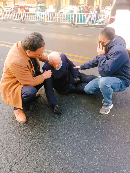 來不及多想,李輝義快步上前查看老人情況。他俯身輕聲詢問,得知老人已經86歲。考慮到老人年紀大、受傷行動不便,李輝義小心翼翼地將老人攙扶起來,護送到自己的車上安頓好,并撥打了120急救電話。