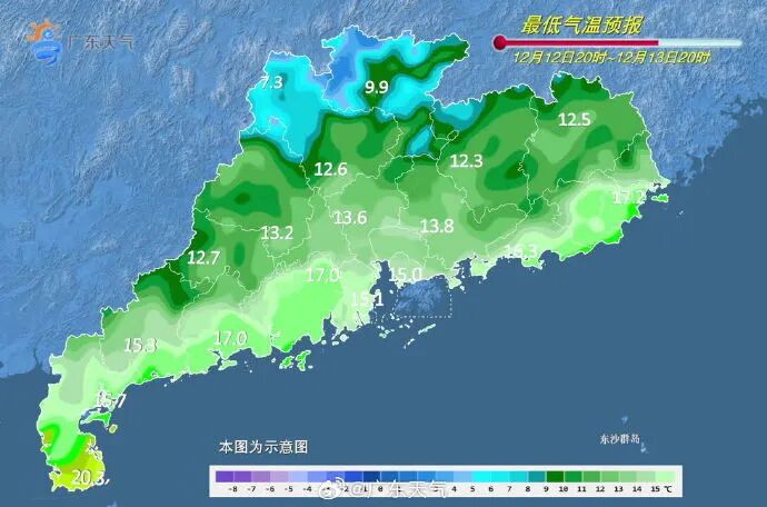 廣東省氣象臺(tái)預(yù)計(jì),12月13日一14日,受中等偏強(qiáng)冷空氣影響,廣東將有一次4℃一8℃的降溫,并伴有小到中雨、局部大雨及5一7級(jí)陣風(fēng)。最低氣溫將出現(xiàn)在12月15日早晨:粵北3℃一7℃,高海拔山區(qū)僅0℃左右,局部有霜(冰)凍;南部市縣13℃一15℃;其余市縣8℃一12℃。