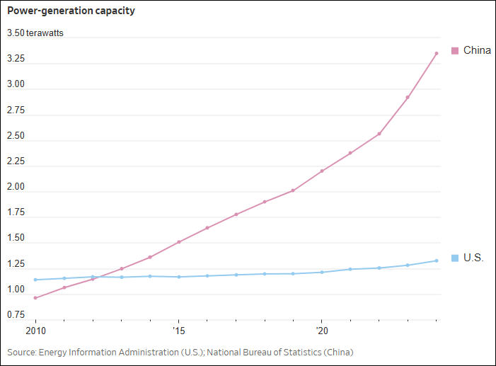 中美兩國發電能力對比?《華爾街日報》制圖