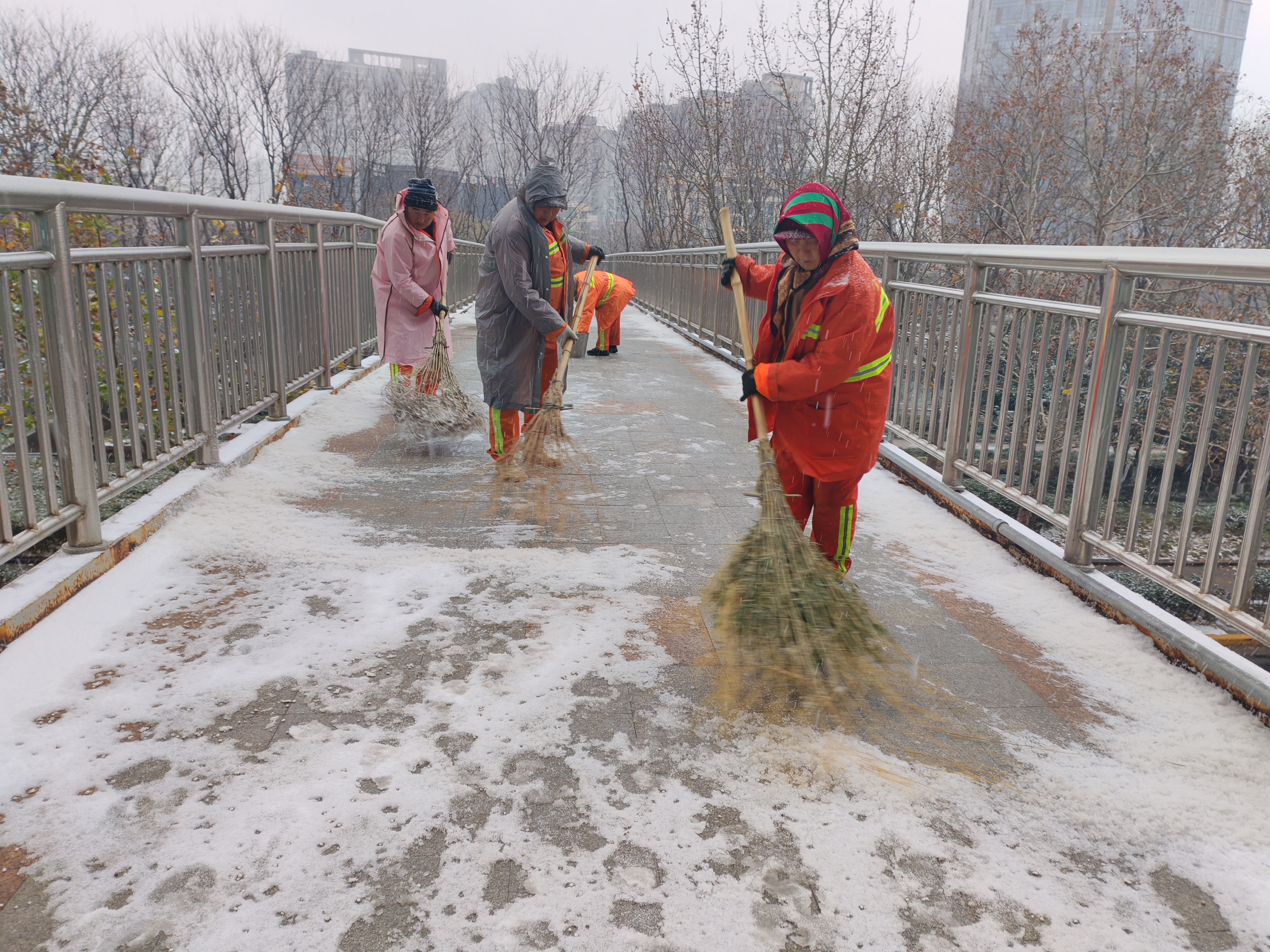 為最大限度降低雨雪冰凍天氣對(duì)城市運(yùn)行和市民出行的影響,鄭州市城市管理局樹(shù)牢底線思維、極限思維,自12月11日夜間起已全面啟動(dòng)清除冰雪應(yīng)急機(jī)制,嚴(yán)格執(zhí)行24小時(shí)值班和領(lǐng)導(dǎo)帶班制度,確保人員、物資、設(shè)備處于最佳待命狀態(tài),確保及時(shí)應(yīng)對(duì)突發(fā)情況,高效開(kāi)展道路清除冰雪作業(yè)。