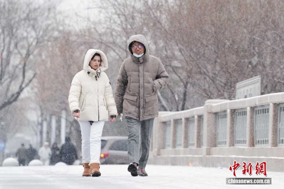 12月12日,河北石家莊,市民雪中出行。當(dāng)日,該省迎來(lái)降雪降溫天氣,大部地區(qū)小雪到中雪,局地有大雪,個(gè)別地點(diǎn)有暴雪,多地氣溫大幅下降。