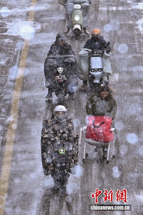 12月12日,山西太原迎來(lái)降雪天氣,市民在雪中出行。11日夜間起,山西多地迎來(lái)明顯降雪。中央氣象臺(tái)12日6時(shí)發(fā)布暴雪藍(lán)色預(yù)警,預(yù)計(jì)12日8時(shí)至13日8時(shí),內(nèi)蒙古、山西、河南等8省份部分地區(qū)有大雪,其中山西西部、河南南部等地局部地區(qū)有暴雪。