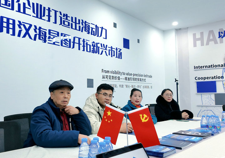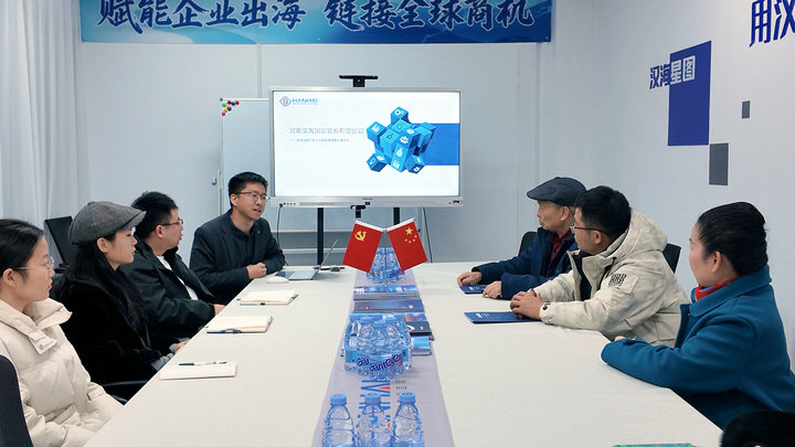 為加強融媒體與平臺服務商雙向賦能、深度融合,推動外貿創新發展,促進“以合規為前提,以品牌為核心,以數據和本地化為兩翼”的跨境出海外貿行動計劃深入進行,12月9日上午,在總編、社長李信華的帶領下,《中原企業家》雜志辦公室主任楊曉瑛,市場部副主任張海峰,編輯部副主任胡靜等一行四人,慕名到位于鄭州市鄭東新區建業智慧港C座的“河南漢海國際貿易有限公司”(以下簡稱漢海國際)參觀訪問。