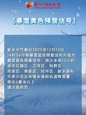 暴雪黃色預警信號 #暴雪#新鄉(xiāng)天氣