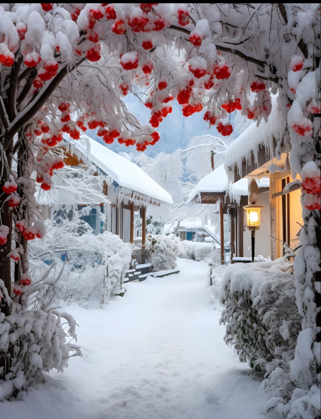 稚子追歡堆雪巷,老翁倚杖盼歸人。