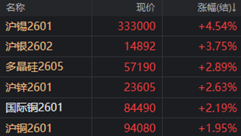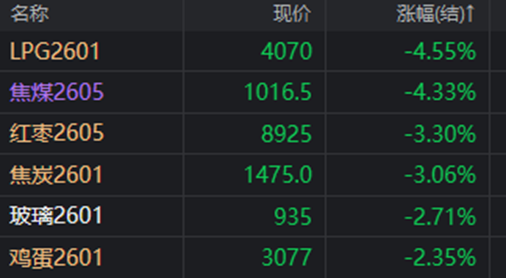 截止收盤,大宗商品以下跌為主。漲幅方面,滬錫漲超4%,滬銀漲超3%,多晶硅、滬鋅、國際銅漲超2%,滬銅、鉑漲近2%。跌幅方面,液化氣、焦煤跌超4%,紅棗、焦炭跌超3%,玻璃、雞蛋、PVC跌超2%,線材、塑料、丙烯跌近2%。