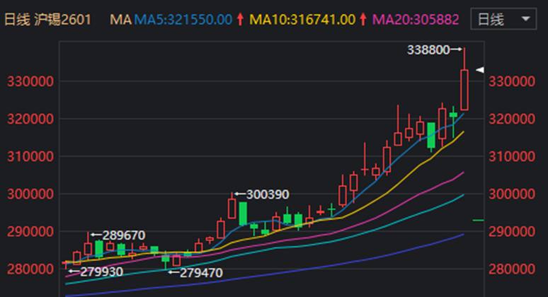 消息面上,近日,深圳金雅福集團金融產品兌付延期問題逐漸引起市場關注。12月10日,一位專司代理金雅福投資者的資深律師向記者證實,投資人最早在5、6月份就發現出現部分產品收益延遲,而真正集中延遲發生在11月下旬,以無錫地區最具代表性,黃金代持業務集中,天津和東北地區亦有投資者參與。12月12日,金雅福集團相關人士回應稱,近期的確出現部分兌付問題,公司管理層正在積極籌措資金來解決,同時也向有關部門報備,爭取多方支持來解決問題。另一方面,近期剛果(金)東部安全形勢持續惡化,引發市場對錫供應中斷的擔憂情緒,尼日利亞也面臨供應擾動風險,而緬甸錫礦復產進度緩慢,短期內供給端原料問題解決難度較大,錫價繼續大幅上漲。昨日夜盤錫價就呈現高開上行,今日錫價短暫調整后,重返強勢,錫價上破33萬,漲幅超4%。供應遲遲不及預期,甚至引發進一步減產風險,而需求未來展望樂觀,錫價或有望重返35萬。