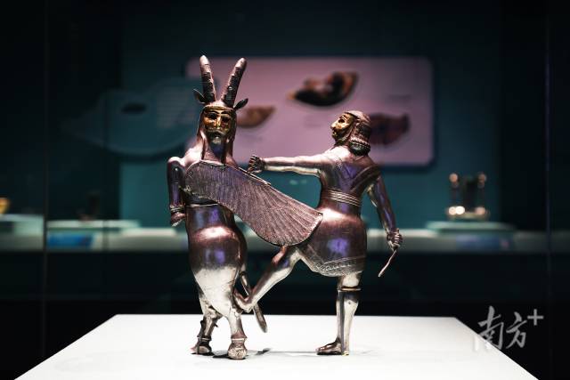 “銅石并臻”篇章聚焦從石器時代到青銅時代轉(zhuǎn)變的石刻雕塑和青銅器,再現(xiàn)早期文明在石刻雕塑、金屬藝術(shù)等領(lǐng)域的美學(xué)工藝。“帝國華章”篇章通過埃蘭王國、巴比倫王國、亞述帝國、阿契美尼德王朝等早期帝國的金銀器,展現(xiàn)了當(dāng)時的精湛工藝和王權(quán)的財富象征,以及其與周邊地區(qū)的文化交流。“希臘榮光”篇章展出希臘化時期精美絕倫的珠寶首飾和生活用具。這些珍寶不僅展現(xiàn)了希臘文化的獨特魅力,還融合了東方元素,成為世界珠寶藝術(shù)史上的璀璨篇章。“波斯華彩”篇章著重講述薩珊王朝的藝術(shù)風(fēng)格,并揭示了其通過絲綢之路與唐朝的交流互鑒,成為本次展覽的生動注腳。