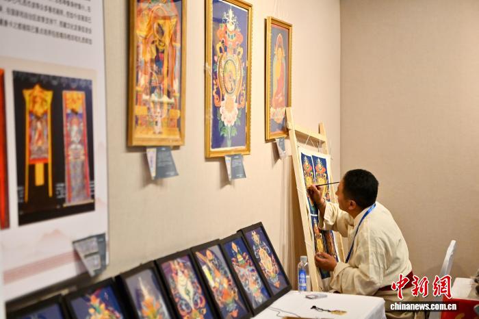 12月12日,西藏民間藝人現場展示唐卡繪畫技藝。當日,“非遺無界·絲路同輝——海上絲綢之路非物質文化遺產展”在福建泉州舉辦。中新社記者 王東明 攝