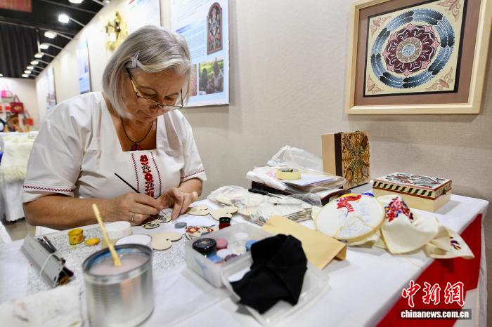 12月12日,匈牙利民間藝人展示毛裘刺繡技藝。當日,“非遺無界·絲路同輝——海上絲綢之路非物質文化遺產展”在福建泉州舉辦。中新社記者 王東明 攝