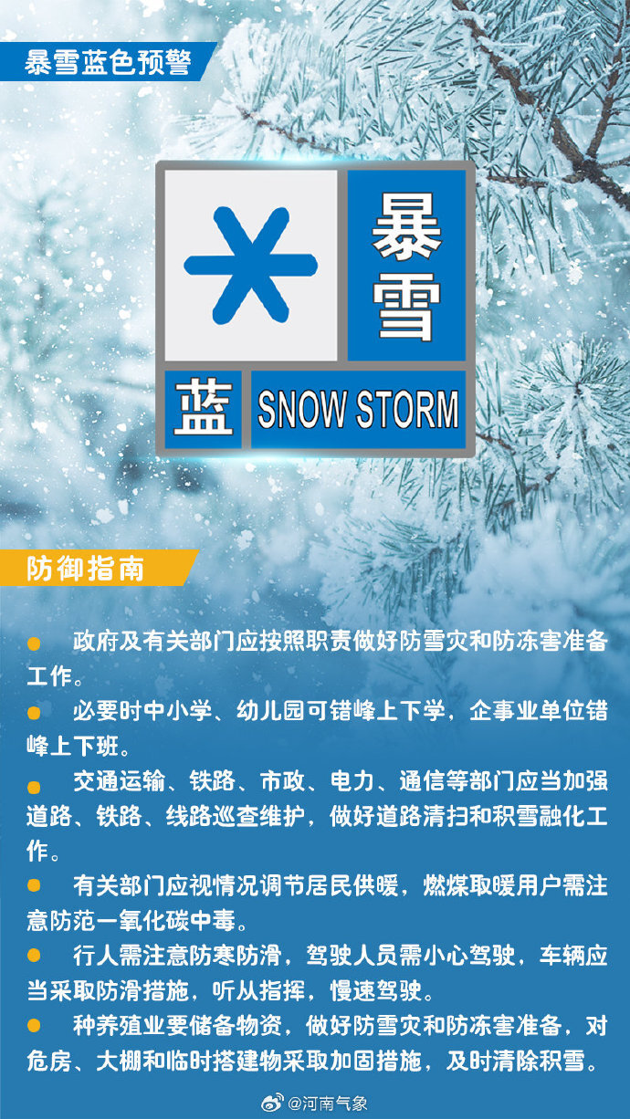 【大河財立方消息】鄭州市氣象臺2025年12月12日14時15分發布暴雪藍色預警信號:預計今天下午到夜間,鄭州市主城區、航空港區、上街區所轄鄉鎮及街道降雪持續,降雪量將達4毫米以上。請注意防范降雪、道路結冰等產生的不利影響。