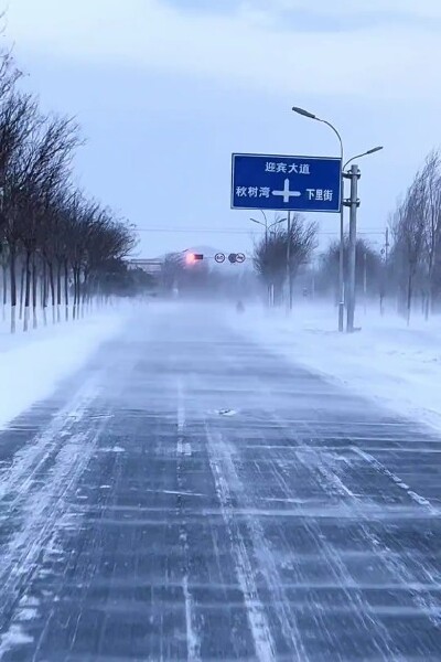 林州迎賓大道,下雪了,風(fēng)也提高到了7級,路成了風(fēng)的跑道!