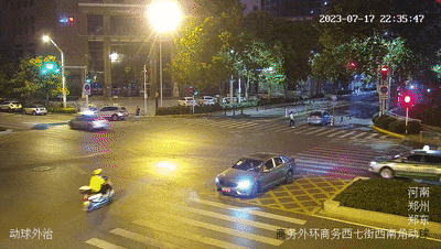 2025年10月15日,河南鄭州。早高峰時(shí)段,一輛小汽車在綠燈亮起后正常起步,此時(shí)一輛電動(dòng)自行車突然從右后方斜插至車頭前。猝不及防之下,兩車發(fā)生碰撞。事故造成兩車受損,電動(dòng)自行車駕駛?cè)嗽乘さ购笫茌p微傷。