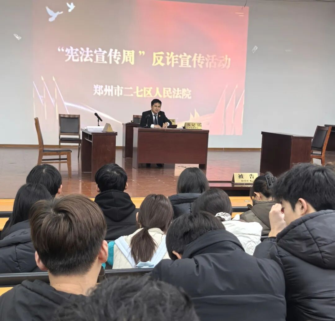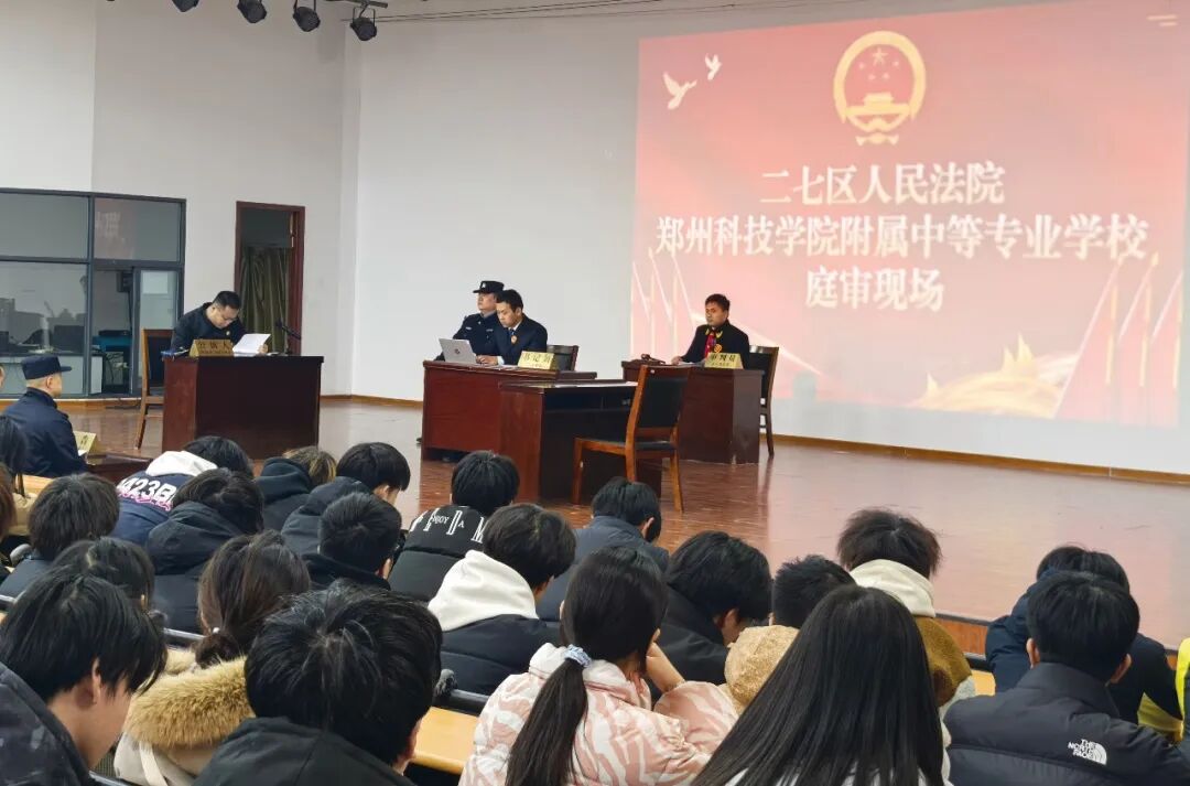 12月11日,二七法院法官張保林在鄭州科技學院附屬中等專業學校公開開庭審理了一起盜竊案件,500多名師生在現場旁聽了案件審理全過程,沉浸式感受了司法的莊嚴與公正。