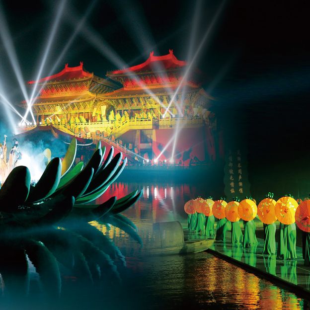 這是開封最具現(xiàn)代影響力的5A級景區(qū),依據(jù)北宋張擇端《清明上河圖》1:1復(fù)原打造。景區(qū)內(nèi)工作人員身著古裝,游客可免費(fèi)租漢服,仿佛穿越回宋朝。每天有包公迎賓、王員外招婿等精彩演出,還有大型水上實(shí)景演出《大宋·東京夢華》場面震撼。