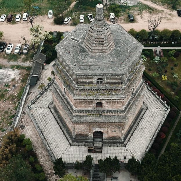 開封地區(qū)現(xiàn)存最古老的建筑,始建于北宋開寶七年(974年),距今超1000年歷史。塔身由近萬尊佛磚組成,一磚一佛,有菩薩、羅漢、樂伎等108種主題,是北宋早期六邊形佛塔的典型代表。