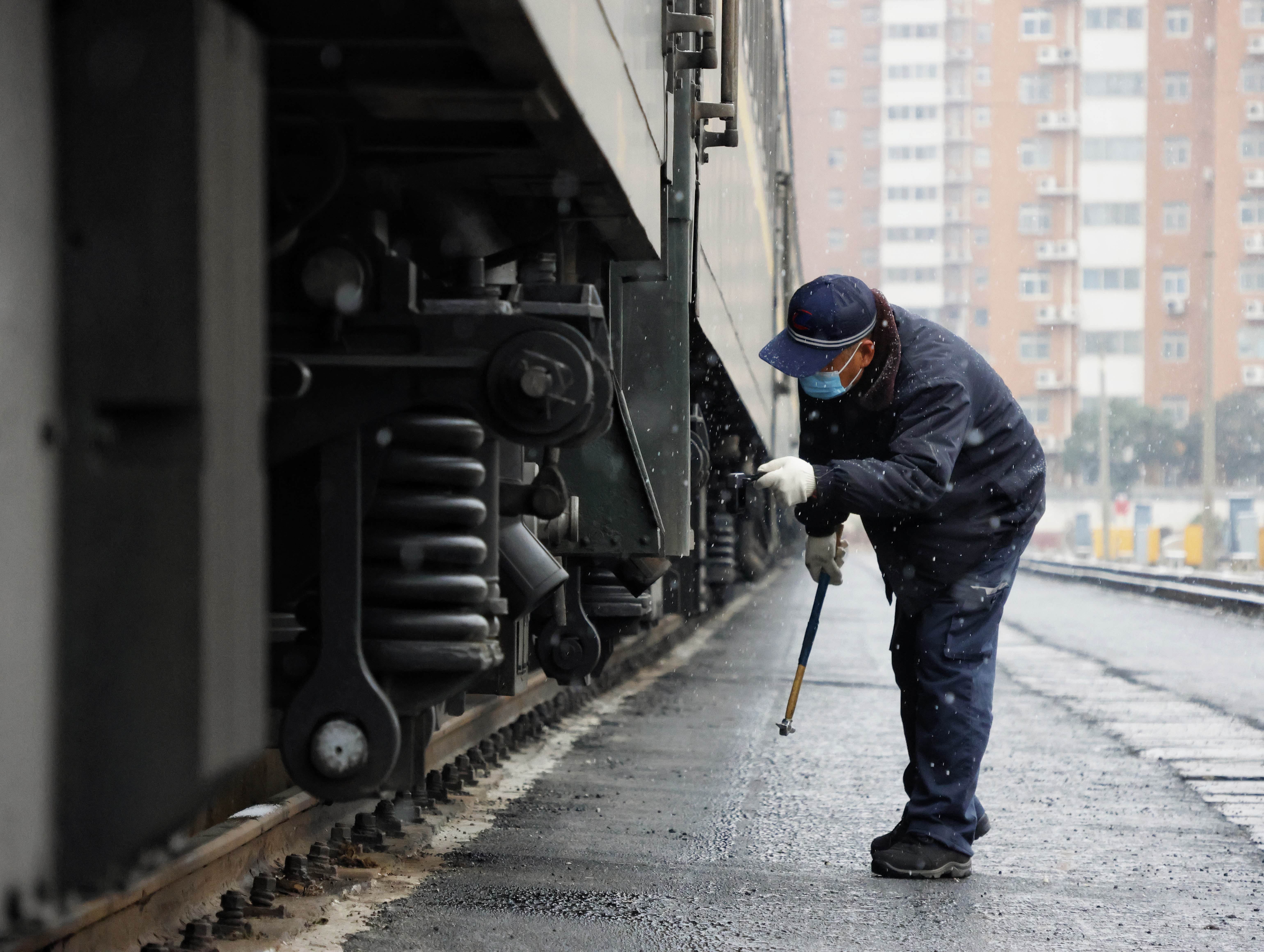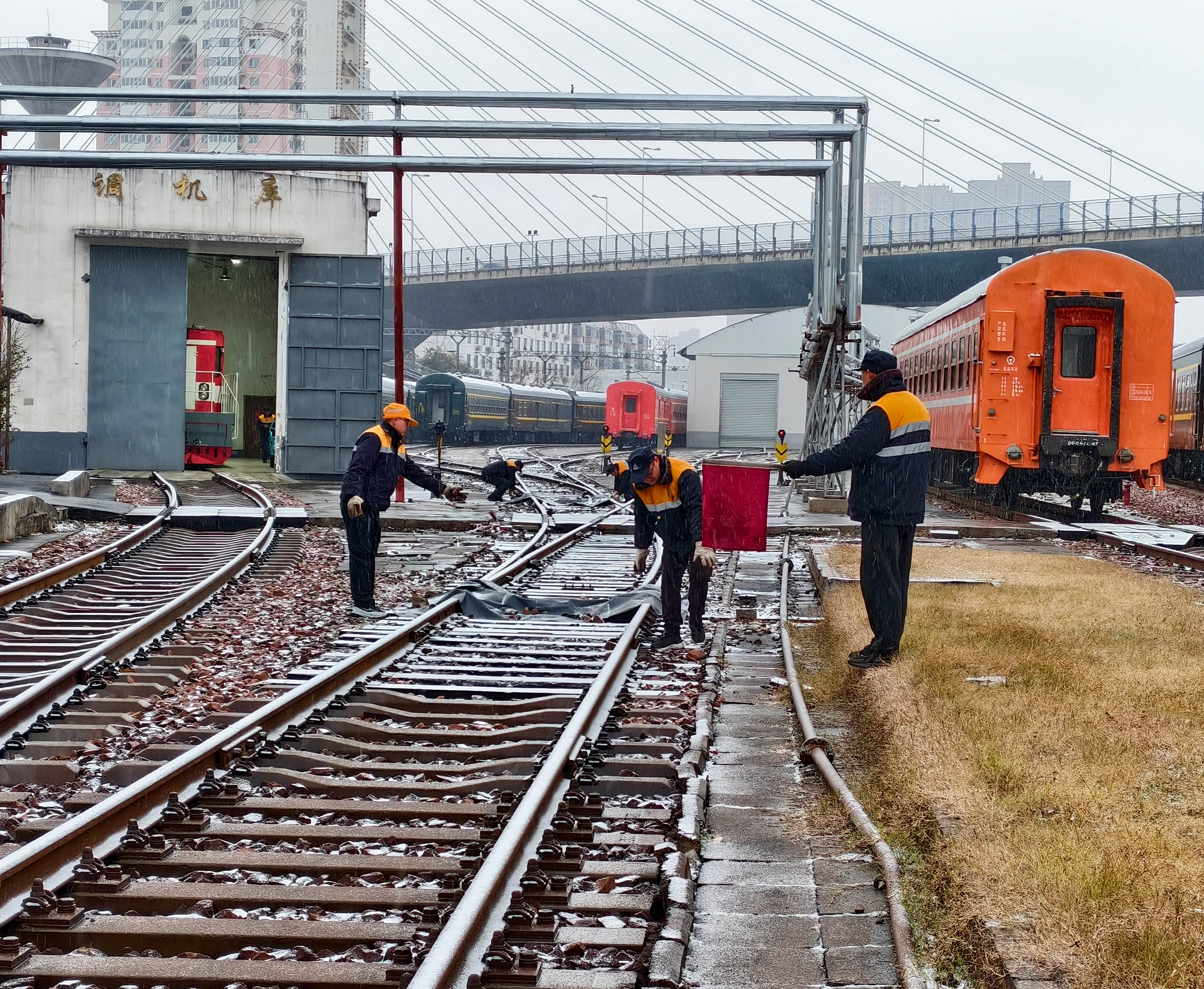 為全面應對本輪雨雪降溫天氣,國鐵集團鄭州局管內機務、工務、電務、車輛等單位提前研判風險,細化完善應急預案,鄭州高鐵基礎設施段、鄭州供電段等單位成立多支黨員突擊隊,采取“徒步巡查+視頻監控+添乘檢查”相結合的方式,通過360度旋轉遠程視頻在線監控系統,實時掌控鄭州站等重點站區接觸網覆冰情況,做到快速響應、高效處置;鄭州電務段、新鄉電務段加大對道岔融雪裝置檢查監測,確保性能、狀態良好;鄭州橋工段、南陽工務段、洛陽工務段等在普速線路道岔轉轍部位等關鍵區域噴灑融雪劑、防凍液,做到“隨下隨掃、雪停路凈”,確保道岔轉動靈活、線路平順暢通;新鄉機務段嚴格落實電力機車防弓網故障和走行部防脫斷措施,合理調整受電弓升弓壓力,加大走行部檢查力度,保障低溫雨雪天氣機車安全運行。