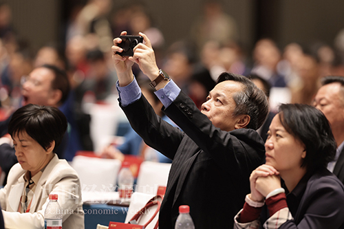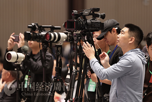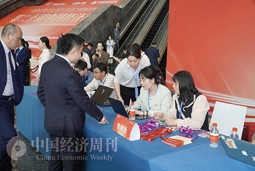 主論壇現場,參會嘉賓翻閱《中國經濟周刊》雜志。