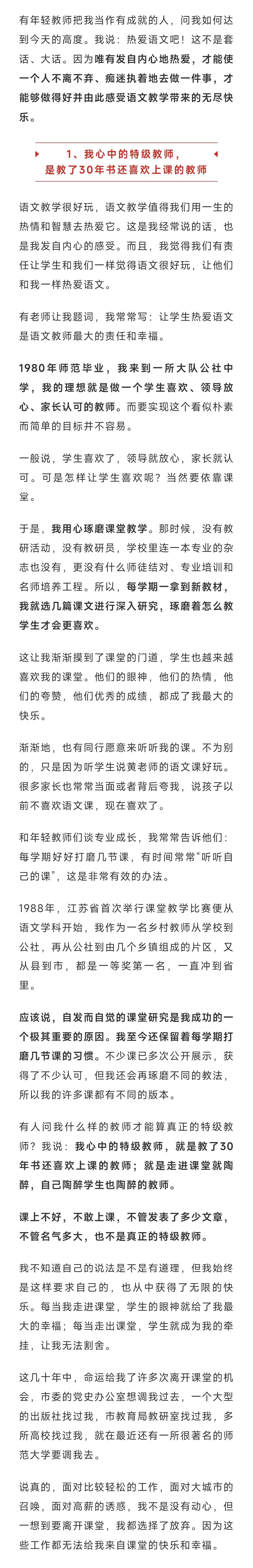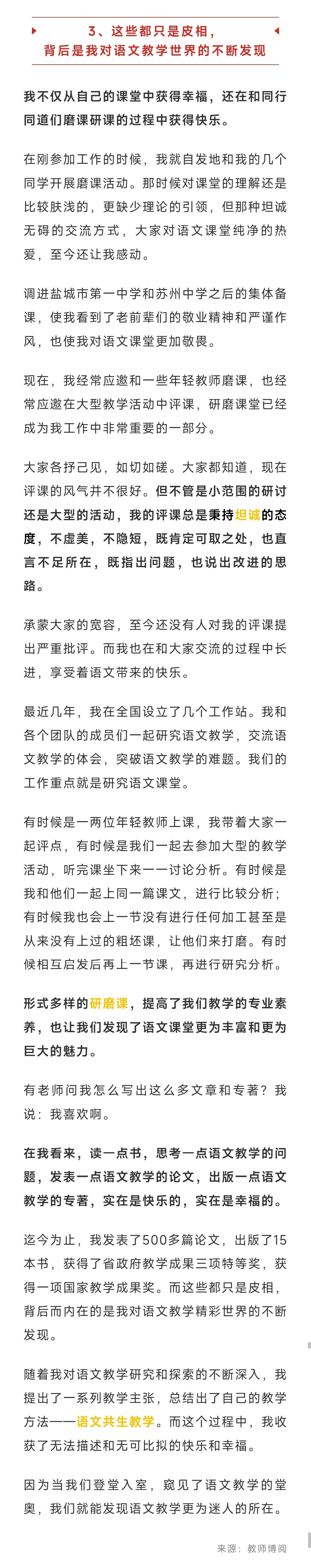 “應該說,自發而自覺的課堂研究是我成功的一個極其重要的原因。我至今還保留著每學期打磨幾節課的習慣。不少課已多次公開展示,獲得了不少認可,但我還會再琢磨不同的教法,所以我的許多課都有不同的版本。”