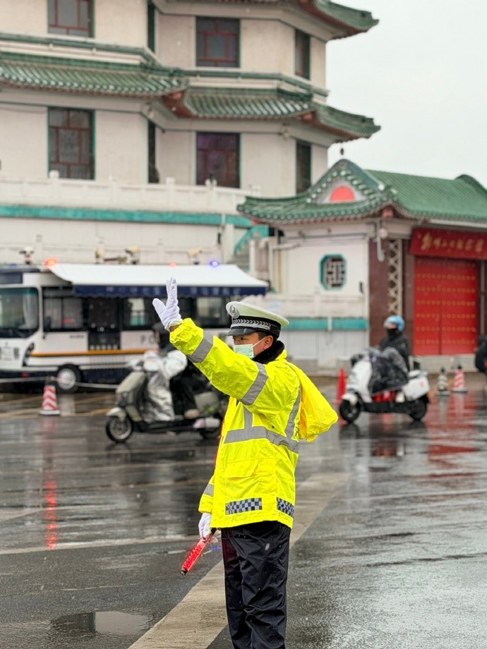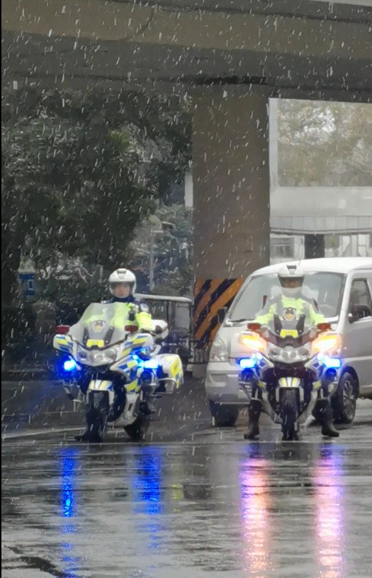 △鄭州鐵騎秒變 “雪中衛士”,頂風冒雪堅守執勤一線,穿梭在車流中疏導交通,提醒車輛減速慢行,守護群眾出行平安。
