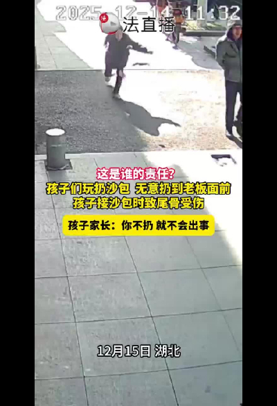 孩子們玩扔沙包,無意扔到老板面前,孩子接沙包時致尾骨受傷