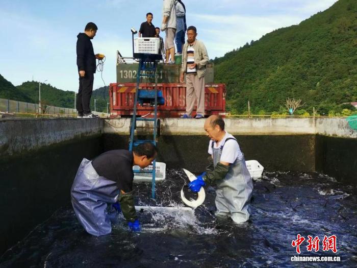 “這兩年訂單形勢不錯,秦嶺冷水魚品質好,出口國外收獲了不少好評。”陜西省漢中市佛坪縣秦地南漁業現代農業園園區負責人譚娟稱,工人們正以最快速度將一框框鱘魚過秤裝車,來自秦嶺的冷水魚將啟程前往東南亞地區。