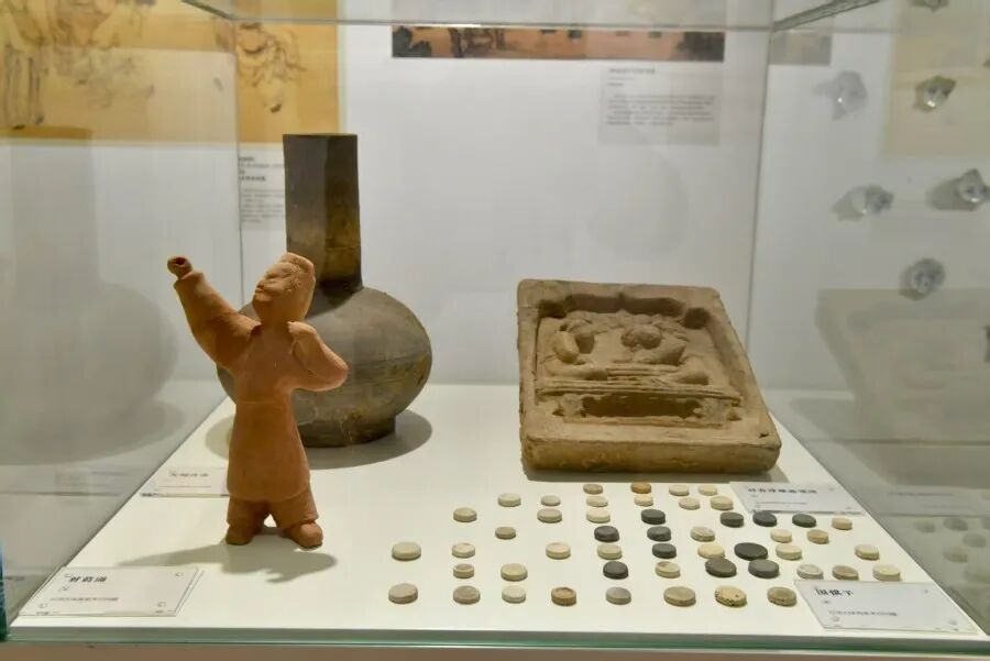 盡管面積不大,但博物館收藏了不少“寶貝”,150多件展品來自民間收藏家的支持,件件都是真品。在這里可以看到漢代的狩獵紋壺,上面的紋飾清晰再現了2000年前人類騎馬射箭打獵活動的場景;宋代的馬球磚雕,從中可以了解當時馬球運動員的服飾;還有宋代的圍棋子、明清時期民間習武的石球、石鎖、石刻的象棋盤……而在一面拓片墻上,數十幅漢代畫像磚拓片,形象化、多樣化地表現了漢代體育活動的景觀。