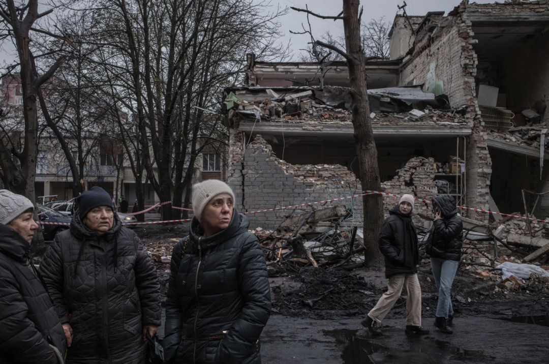 (上圖為烏克蘭一地上個月遭受俄羅斯導彈襲擊后的場面)