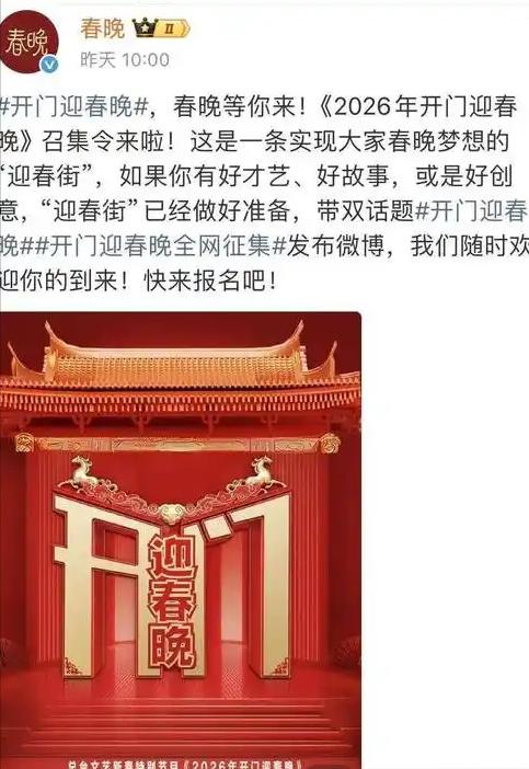 2026年的央視春晚已經正式建組,并且發布了節目征集令,流量明星的粉絲紛紛點名自己的正主,希望正主能上央視春晚。雖然理論上來說,這種“眾籌”的方式更符合大眾審美,但是對于春晚真正的觀眾來說簡直就是兩眼一黑。