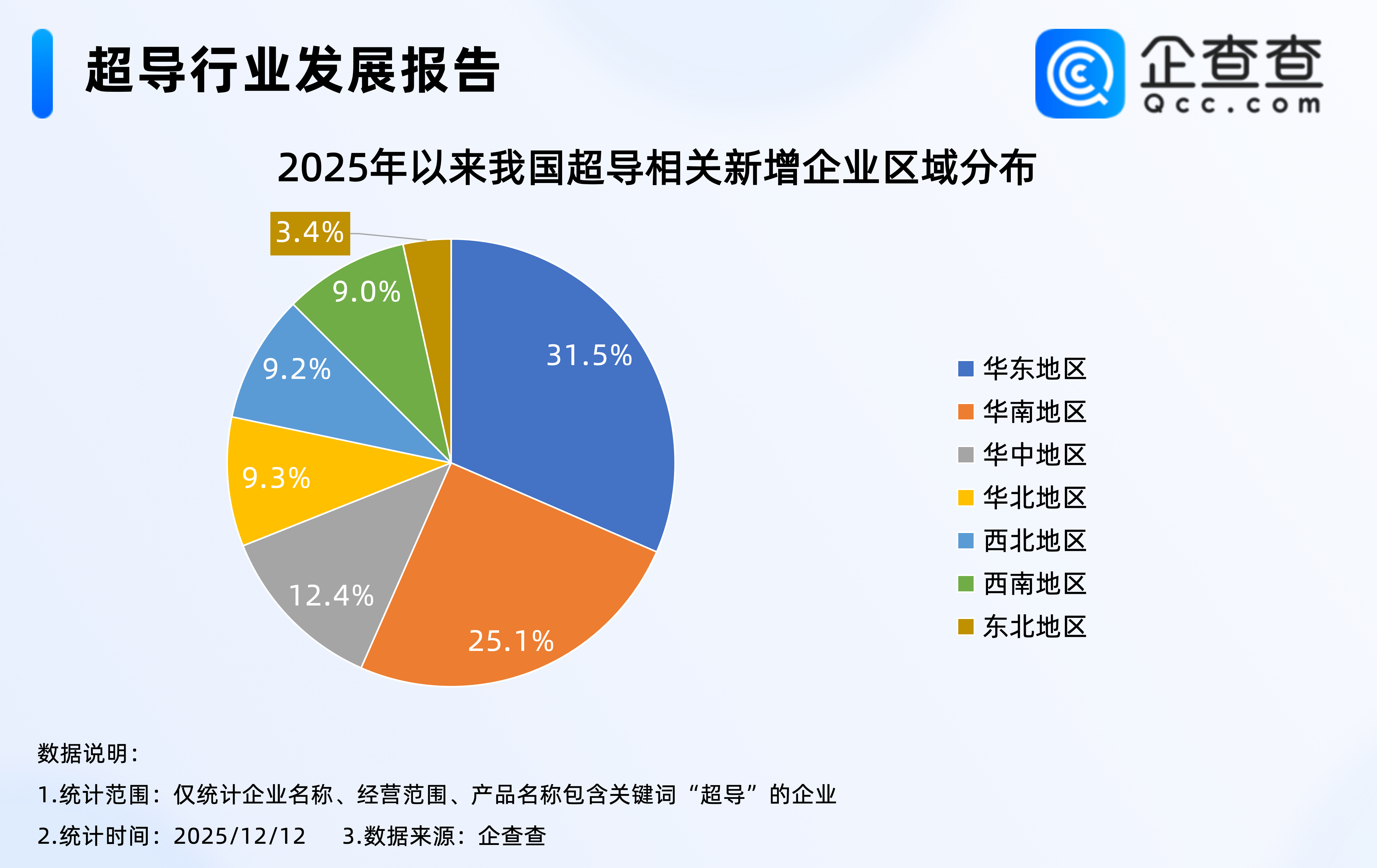 企查查數(shù)據(jù)顯示,2025年以來新注冊的8731家超導相關(guān)企業(yè)中,超三成相關(guān)企業(yè)位于華東地區(qū),占比達31.5%,其次華南地區(qū)占比25.1%,東北地區(qū)相對最少,占比3.4%。