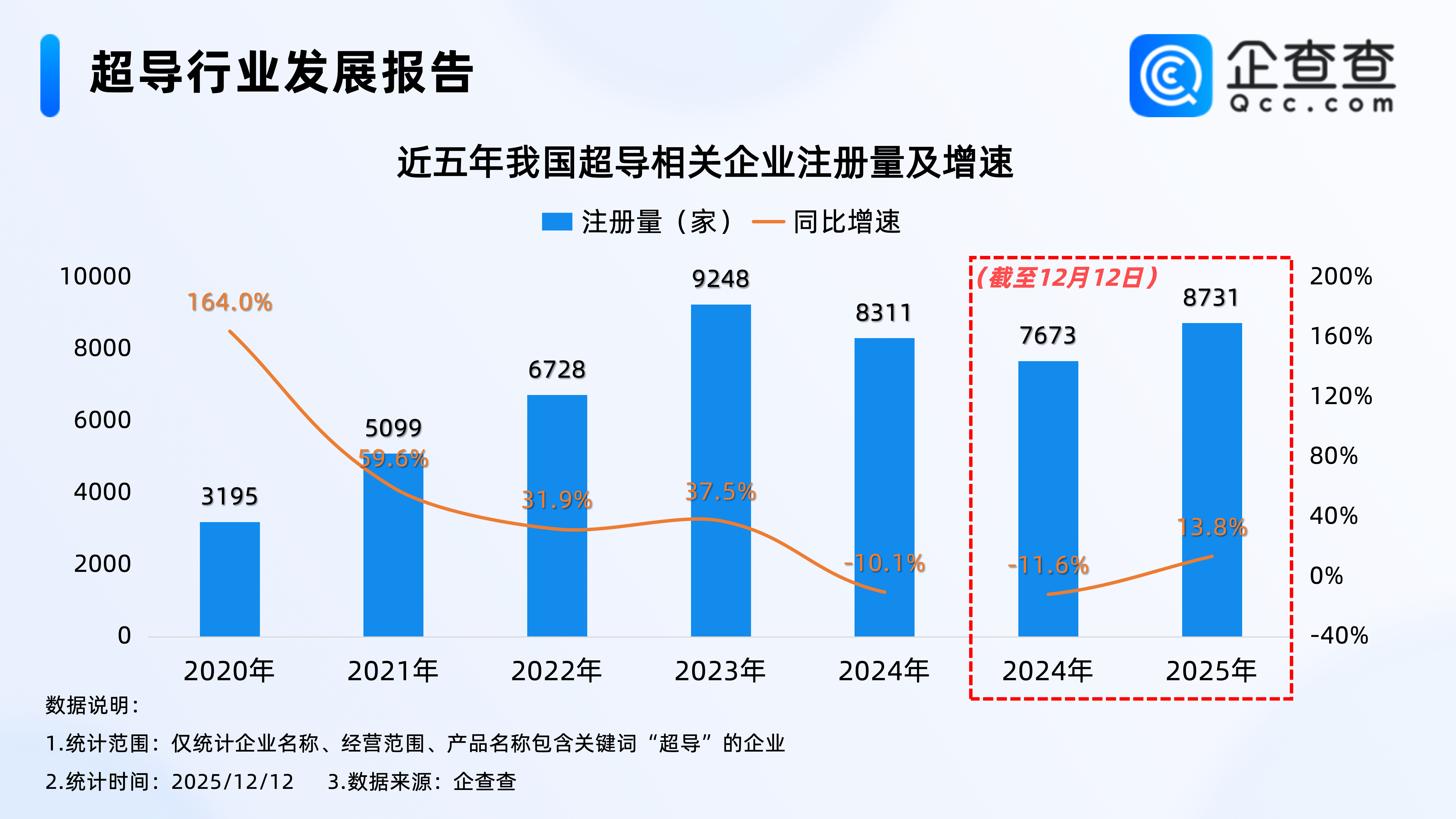企查查數(shù)據(jù)顯示,2020年開始,我國超導相關(guān)企業(yè)每年注冊量逐年增加,2023年注冊量達9248家,達近五年注冊量峰值,截至12月12日,2025年我國已注冊8731家超導相關(guān)企業(yè),已超2024年全年,相比2024年同期增加13.8%。